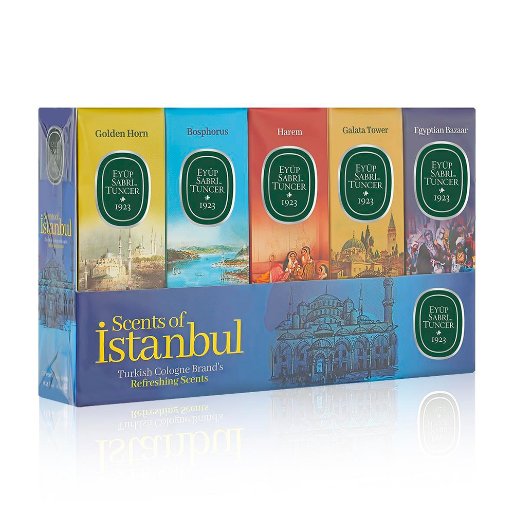 Mükemmel bir İstanbul deneyimine hazır mısınız?Scents of İstanbul ile tarihi yarımadanın muhteşem manzarasına tanıklık edeceğiniz Haliç’ten İstanbul’un simgesi olan İstanbul Boğazı’nın ihtişamına kadar tarihi bir yolculuğuna çıkacaksınız!Eyüp Sabri Tuncer’in birbirinden farklı koku alternatifleriyle özel olarak tasarladığı Scents of İstanbul Kolonya Seti, benzersiz bir koku deneyimi yaşamanız için sizleri bekliyor.Çantanızdan ayırmayacağınız Scents of İstanbul Kolonya Seti, aynı zamanda sevdikleriniz için de güzel bir hediye alternatifi olacak. 5 farklı kokuya sahip, kullanımı kolay sprey başlıklı 16 ml Scents of İstanbul hem ferahlık sağlayacak hem de tazelik katacak. 68 derece alkol ihtiva etmektedir. Set İçeriği:Golden Horn, Bosphorus, Egytptian Bazaar, Harem, Galata TowerKullanım Ömrü:Kapak açıldıktan sonra 12 ay