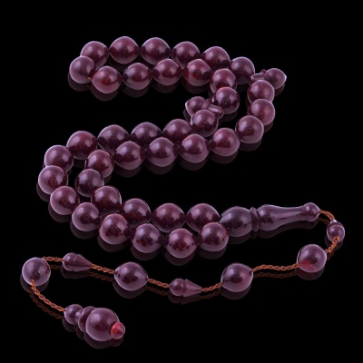 Hareli Sıkma Kehribar Küre Kesim Bordo Usta İşi Tesbih ELT 20