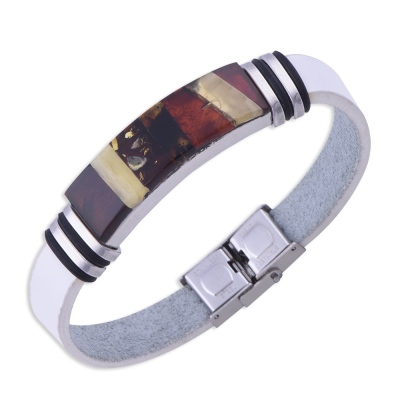 Damla Kehribar Deri Bileklik Beyaz