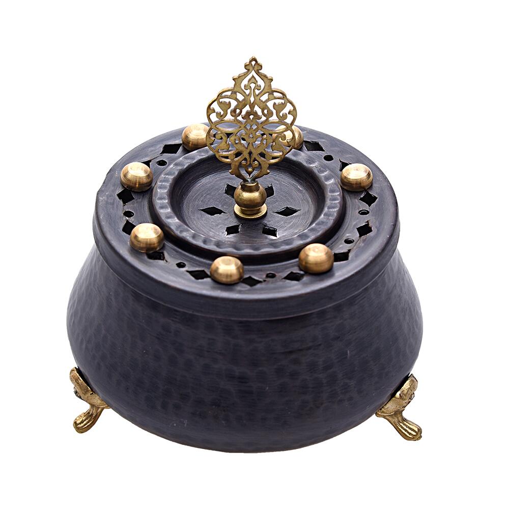 Nusnus Bakır Ayaklı Tütsülük Siyah Ürün Özellikleri:Çap:8.5 cmAğırlık:280 grMateryal: Saf Bakırİşçilik: El İşçiliği