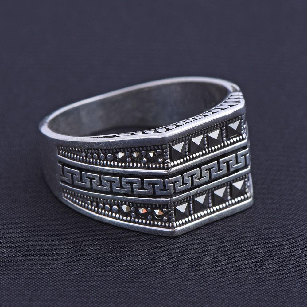 Nusnus Taşlı Zikzak Desenli 925 Ayar Gümüş Erkek Yüzük